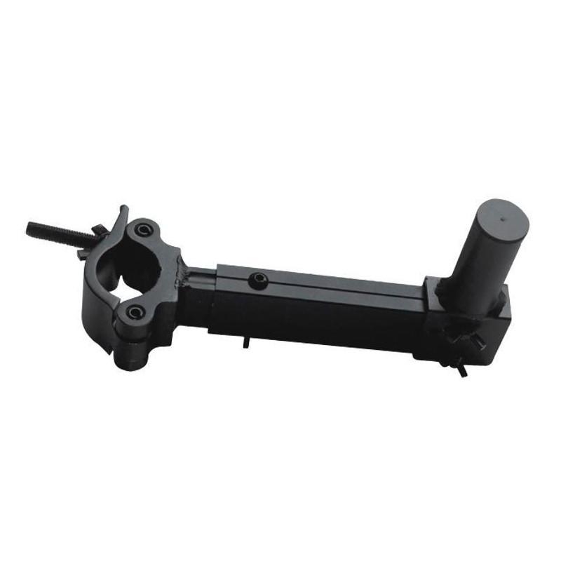 SPB 10 es un soporte indicado para la colocación de cajas acústicas en un puente de truss. Para ello incorpora una abrazadera simple con palomilla para tubos de 48 a 50 mm en un lado y un tubo de inserción de 35 mm en el otro extremo. Incorpora un carril desplazabe que permite variar la longitud del brazo entre 270 mm y 370 mm.