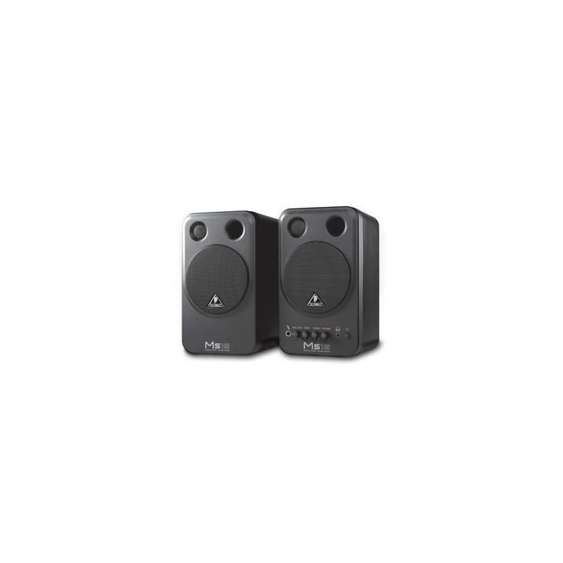 Sistema compacto de altavoces estéreo especialmente indicado para estudios caseros, aplicaciones multimedia, monitorización de teclados y voces, etc. Altavoces potentes de graves de 4' y tweeters de alta resolución, activados por dos amplificadores de 8 vatios de potencia. Controles de volumen, bajos y agudos para mayor flexibilidad. Entradas RCA estéreo para tarjetas de sonido, teclados etc., que pueden ser utilizadas simultáneamente con una segunda fuente estéreo (p. ej., reproductor de CD/MD) a través de la entrada jack estéreo de 3,5 mm. Entrada jack de 6,3 mm adicional para micrófono, ajustable separadamente y mezclable con las otras entradas estéreo para playbacks y aplicaciones de monitorización de voces. Jack estéreo de 3,5 mm para auriculares con función “auto-mute” de altavoces. Apantallado magnéticamente para su uso cerca de pantallas de ordenador