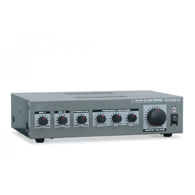 Amplificador / mezclador de megafonia de 3 entradas. Potencia 40W. Salidas 4, 8, 16 Ohm, 100V line. Entradas MIC y LINE.
