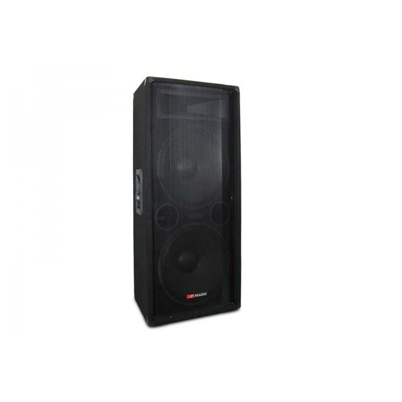 Elementos: 2 x 15” (woofer) + 1' Driver. Potencia: 300 W RMS, 600 W peak. Frec. Respuesta (-3 dB): 50 Hz - 20 kHz. Impedancia: 4 Ohm. Conectores: 1 XLN4 + 1 Jack 1/4”. Peso: 34.2 Kg. Dimensiones: 490+295 x 360 x 1034 mm