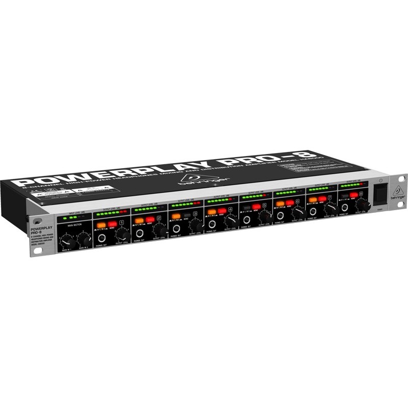 Versátil sistema de amplificación profesional para auriculares en estudio y directo. Ocho secciones de amplificación completamente independientes en una unidad de rack (1U). Dos entradas estéreo para dos mezclas independientes accesibles desde los 8 canales. Ocho entradas directas independientes para ocho mezclas estéreo individuales. Calidad sonora irreprochable con todo tipo de auriculares, incluso a niveles máximos. Control de volumen de salida con medidor LED de 8 segmentos en cada canal. Conmutador mono/estéreo en cada canal para mayor flexibilidad. Cada canal cuenta con un jack estéreo de 6,3 mm en la parte delantera y otro en la parte trasera. Entrada directa en cada canal para una fácil conexión a cualquier fuente de sonido. Salidas en paralelo que permiten conectar varios amplificadores de auriculares en cascada. Amplificadores operacionales 4580 para una calidad de audio excepcional. Potenciómetros de alta calidad y conmutadores luminosos