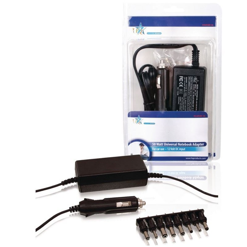 Fuente de alimentación universal Lap-Top/Portátil especialmente para usar en el automóvil. Compatible para casi todos los modelos. También diseñado para una amplia gama de equipos que requiere un voltaje de 15 a 24 Vcc. Salida seleccionable por una ranura variable. Incluye 8 tapones desmontables.