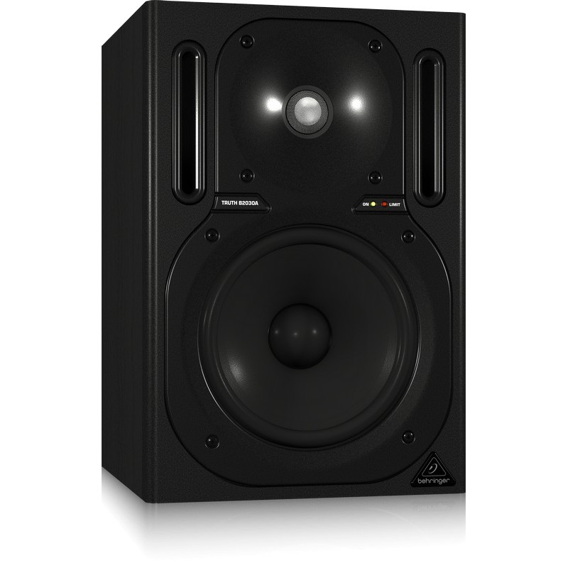 Respuesta en frecuencia ultra lineal de 50 Hz hasta 21 kHz con protocolo de medición individual. 2 amplificadores de potencia incorporados cada uno con 75/35 vatios y enorme reserva de potencia. Tweeter de máxima resolución refrigerado por fluido ferroso. Woofer de 6,75' de longitud creciente con diafragma de policarbonato especial y chasis de fundición a presión resistente al alabeo. Reproducción del sonido controlada y zona de sonido óptimo (“Sweet Spot”) extremadamente grande conseguido mediante la tecnología “Waveguide” de BEHRINGER. Crossover activo con filtro Linkwitz-Riley de cuarto orden. Adaptación flexible a la acústica de sala, incluyendo funcionamiento Subwoofer. Protección contra sobrecargas por limitador individualmente controlado para bajos y agudos. Aislamiento magnético para el uso junto a pantallas de ordenador. Se suministra como par estéreo seleccionado mediante protocolo de medición. Caja acústica de E1-MDF bajo vibraciones y en contaminantes.Entradas XLR y jack de 6,3 mm servo-balanceadas. (Precio por pareja)
