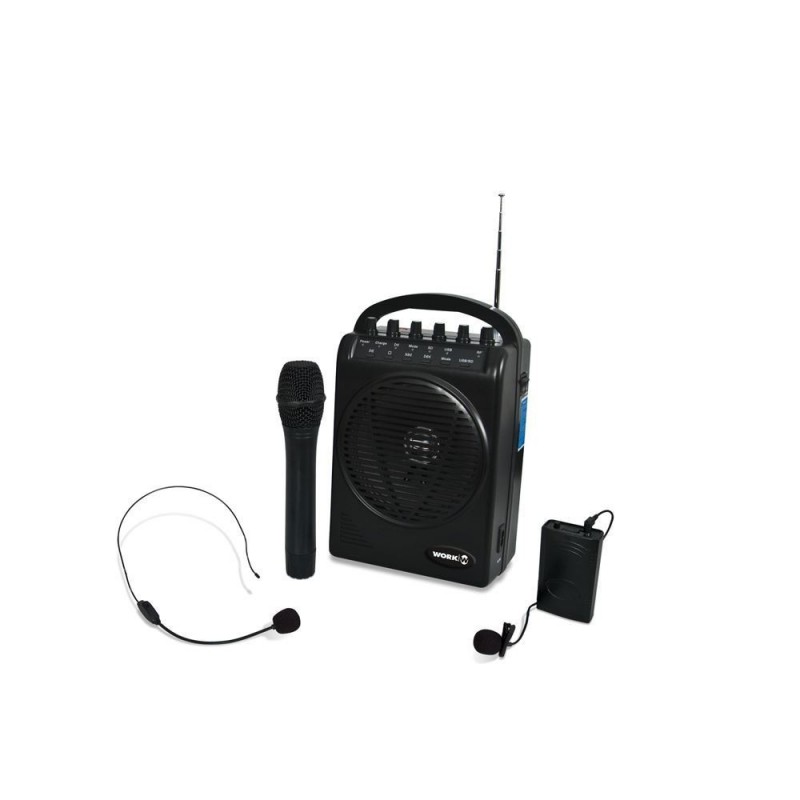 Este amplificador portátil mono canal para VHF es el más pequeño de la serie WAP. Ideal para la reproducción de contenido audio en colegios u otras instalaciones sin sonorización fija, se adapta perfectamente a los requisitos de las diferentes salas, con sus 50 W de potencia. Gracias a su batería recargable, es posible usarlos en cualquier sitio. Muy ligero y fácil de desplazar, es el único modelo de la serie con una bolsa de transporte. Como todos los productos de la serie, WAP 305 se adapta perfectamente a los nuevos formatos de reproducción.Si todavía estás con tu viejo reproductor Casete/CD, es hora de deshacerte de él... WAP 305 incluye la última tecnología para la reproducción de contenido audio. Gracias a su puerto USB y su interfaz para tarjetas SD, ahora toda tu música cabe en tu bolsillo. Las numerosas funciones aseguran el total control de la reproducción. Además, su entrada AUX permite conectar dispositivos externos. WAP 305 incluye un micrófono de mano, un emisor de petaca y un micrófono de solapa. Los usuarios pueden así hacer sus discursos con una gran libertad de movimiento. La calidad de los componentes asegura su perfecta audición. Datos técnicos WAP 305 - Amplificador portátil mono canal para VHF. - Potencia de Salida: 50 W. - Puertos USB/SD. - Control de Tono y ECHO digital. - Entrada para mic. con cable. - Entrada Aux. y Salida Aux. - Modos de ejecución en Loop. - Batería recargable 12V 1.2 AH. - Alimentación: AC 220 V 50 Hz. - Dimensiones: 180x300x110mm. - Peso: 2,4 kg. - Accesorios incluidos: --> 1 micrófono de mano. --> 1 Emisor de petaca. --> 1 micrófono lavalier. --> 1micrófono de cabeza. --> 1 cable de alimentación. --> 1 bolsa de transporte.